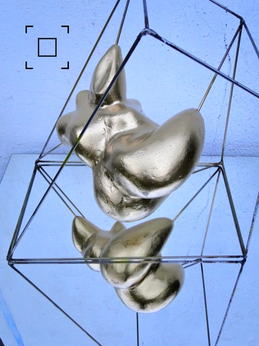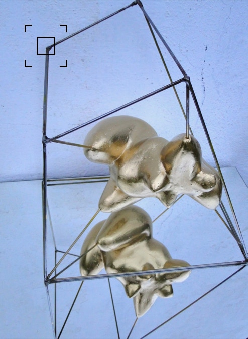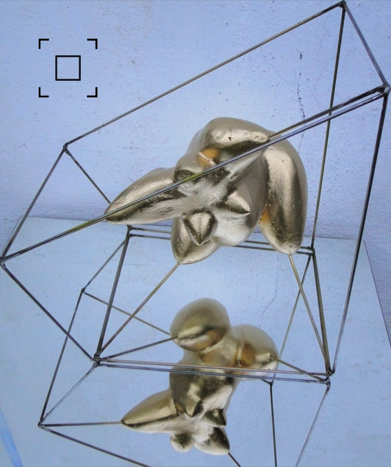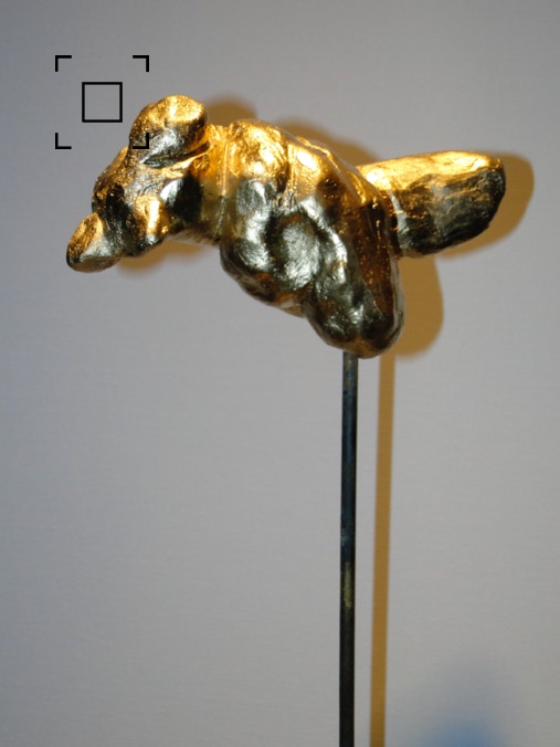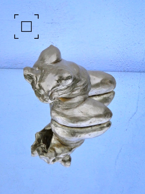 Das „engelchen auf dem spiegel“ ist aus gips mit goldfassung in einem metallraum und auf dem spiegel frei stellbar.