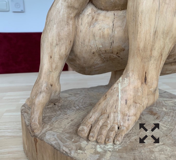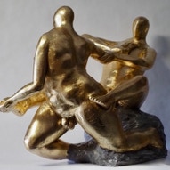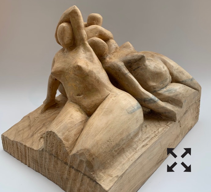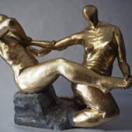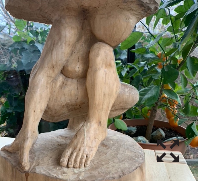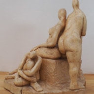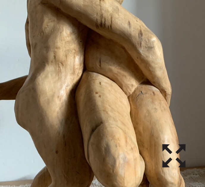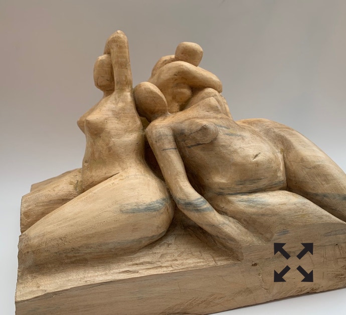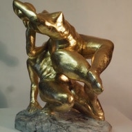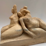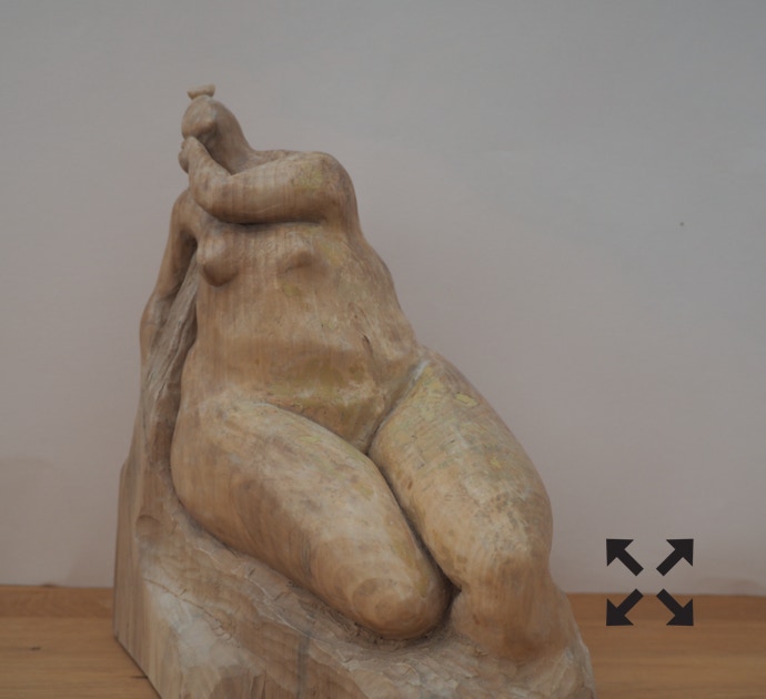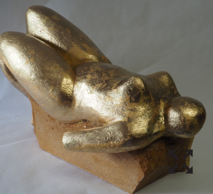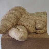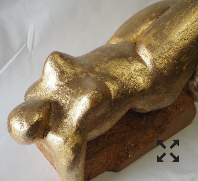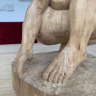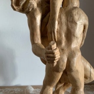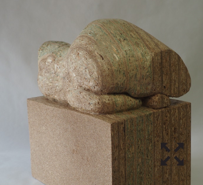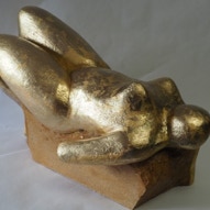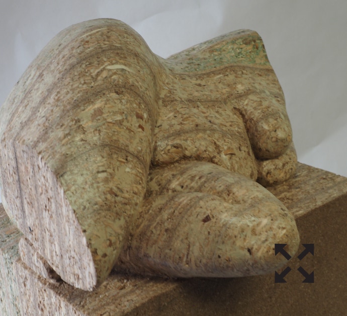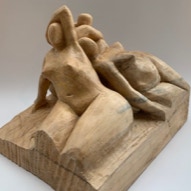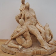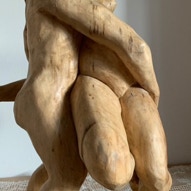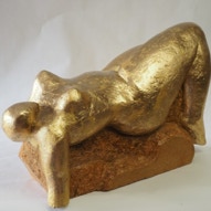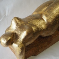 Die „Liegende I und II“ , sowie „Engelchen“ entstanden als letzte Figuren und sind aus einem spanplattenblock gearbeitet. Eine neue erfahrung ist das arbeiten mit einem block aus verleimten spanplatten. Es entstehen ganz neue strukturen und haptische erlebnisse. Die „Liegende II“ ist vergoldet und bildet einen bewussten Kontrast aus den „billigen“ spanplatten und „edlem“ gold!