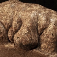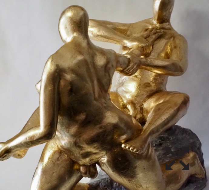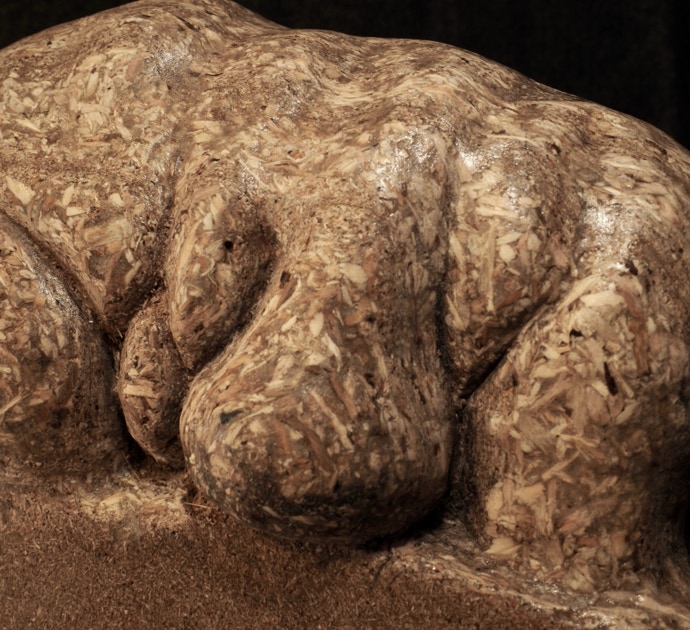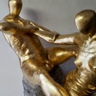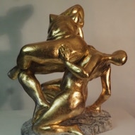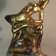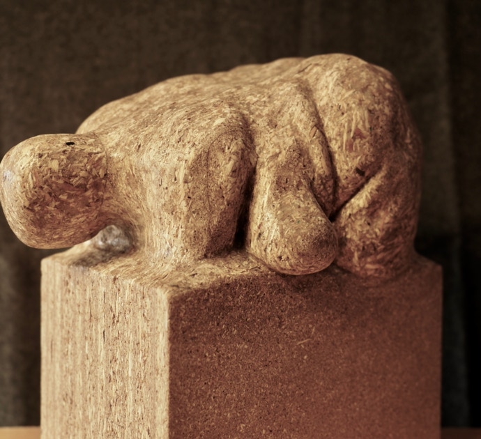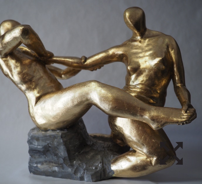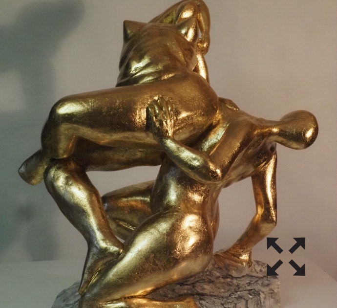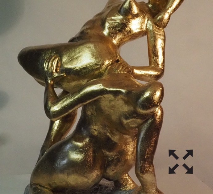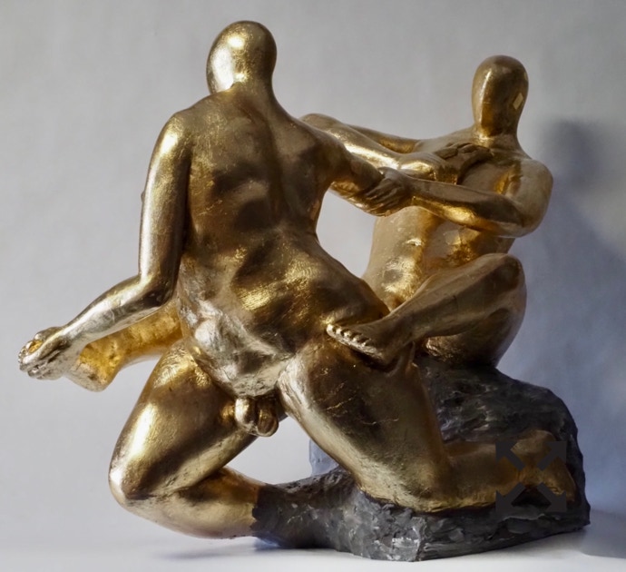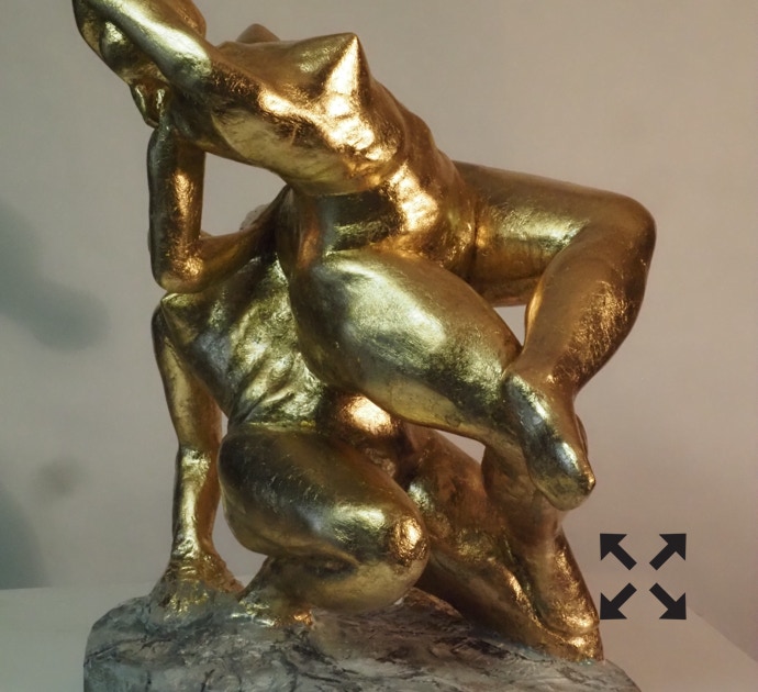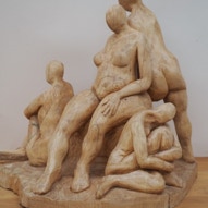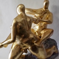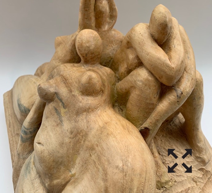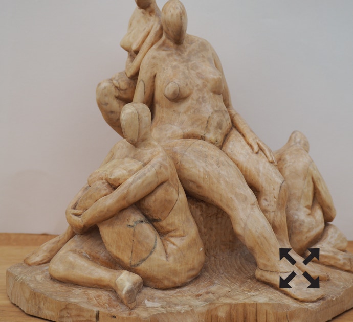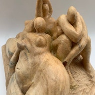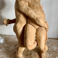 Die „Liegende I und II“ , sowie „Engelchen“ entstanden als letzte Figuren und sind aus einem spanplattenblock gearbeitet. Eine neue erfahrung ist das arbeiten mit einem block aus verleimten spanplatten. Es entstehen ganz neue strukturen und haptische erlebnisse. Die „Liegende II“ ist vergoldet und bildet einen bewussten Kontrast aus den „billigen“ spanplatten und „edlem“ gold!