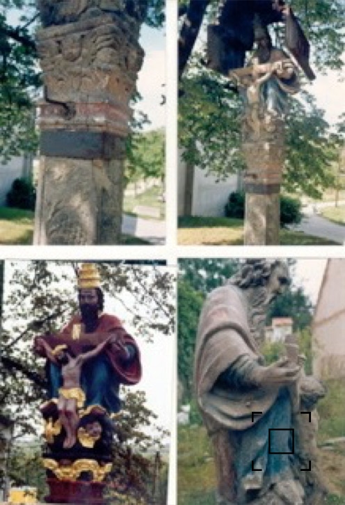 Grosse mariensäule und farbig gefasste dreifaltigkeitssäule in Röschitz