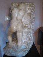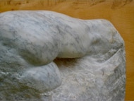 Als klassisches material für die steinbildnerei gilt natürlich der statuario marmor aus carrara, der auch mein bevorzugter stein ist, aber auch kalkstein und andere schön gemaserte oder farbige steine sowie holz kommen zur anwendung. Die umsetzung von ideen und entwürfen in stein, ist die aufwändigste und kompromissloseste arbeit des bildhauers. Jeder schlag wirkt direkt und ist unkorrigierbar. Der reiz dieser arbeit ist das tasten und freilegen der form. Dieser handwerklich archaische und langsame gestaltungsprozess bringt künstlerisch das überzeugendste ergebnis.