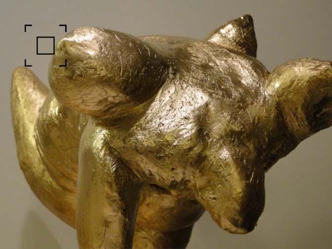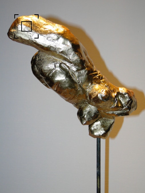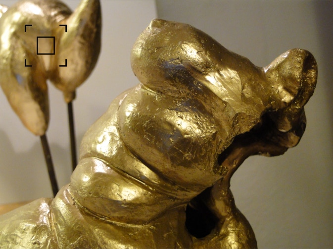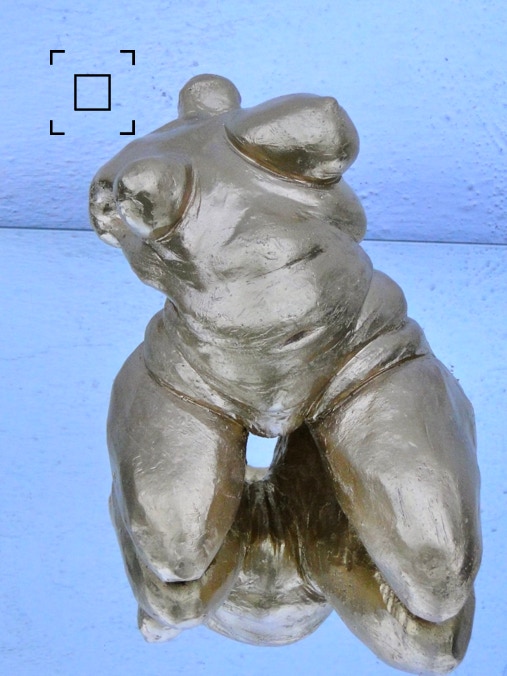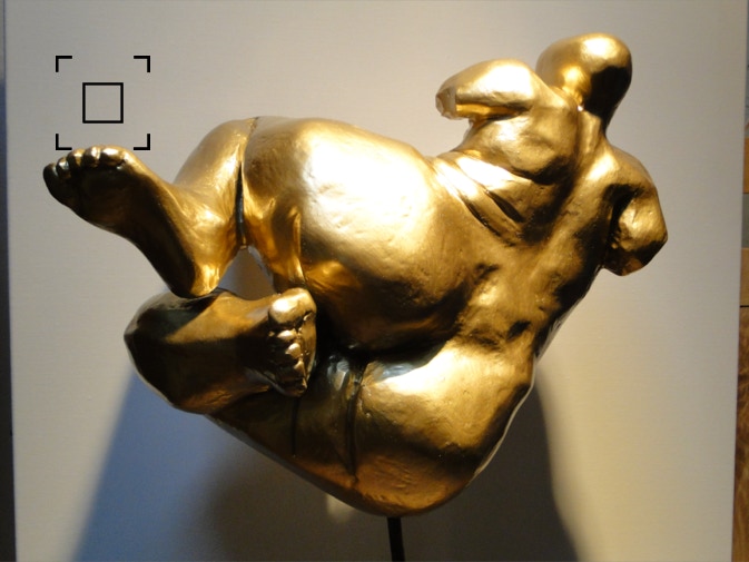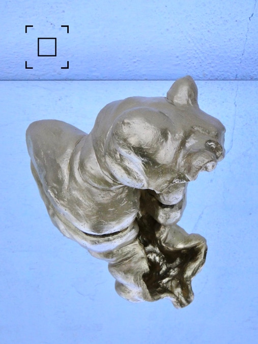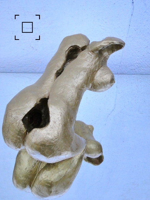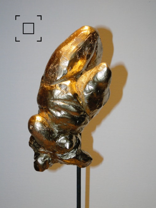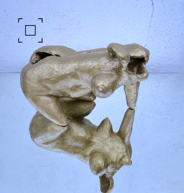 Das „engelchen auf dem spiegel“ ist aus gips mit goldfassung in einem metallraum und auf dem spiegel frei stellbar.
