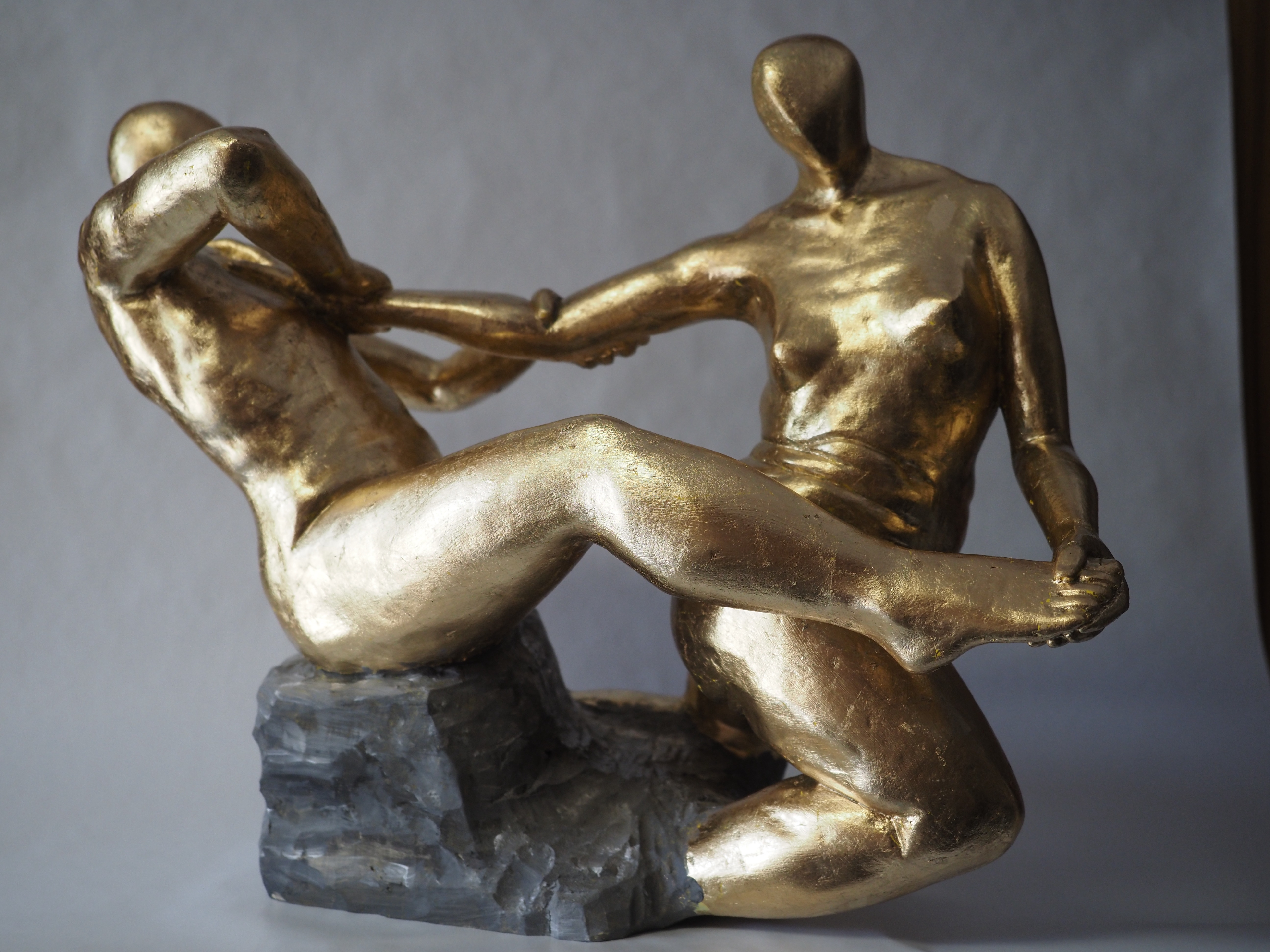 Die „Liegende I und II“ , sowie „Engelchen“ entstanden als letzte Figuren und sind aus einem spanplattenblock gearbeitet. Eine neue erfahrung ist das arbeiten mit einem block aus verleimten spanplatten. Es entstehen ganz neue strukturen und haptische erlebnisse. Die „Liegende II“ ist vergoldet und bildet einen bewussten Kontrast aus den „billigen“ spanplatten und „edlem“ gold!