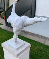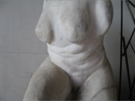 Als klassisches material für die steinbildnerei gilt natürlich der statuario marmor aus carrara, der auch mein bevorzugter stein ist, aber auch kalkstein und andere schön gemaserte oder farbige steine sowie holz kommen zur anwendung. Die umsetzung von ideen und entwürfen in stein, ist die aufwändigste und kompromissloseste arbeit des bildhauers. Jeder schlag wirkt direkt und ist unkorrigierbar. Der reiz dieser arbeit ist das tasten und freilegen der form. Dieser handwerklich archaische und langsame gestaltungsprozess bringt künstlerisch das überzeugendste ergebnis.